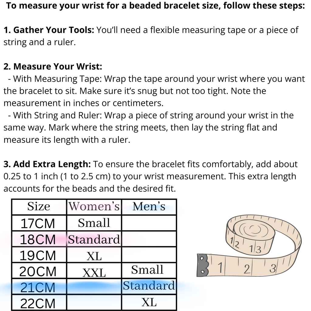 Keep Bracelet dry, away from lotions and perfumes. Roll bracelet on and off hand.