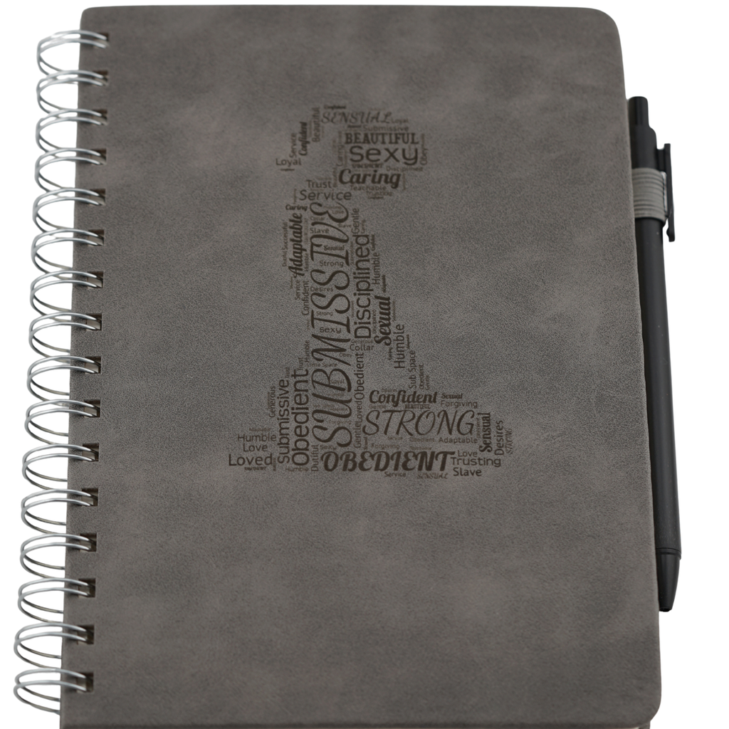 A boldly submissive notebook engraved with custom kinky word art, created for those who like their obedience written down and their thoughts kept in line. Dark, intentional, and quietly provocative, this grey spiral notebook is made for notes that feel a little dangerous and very personal.