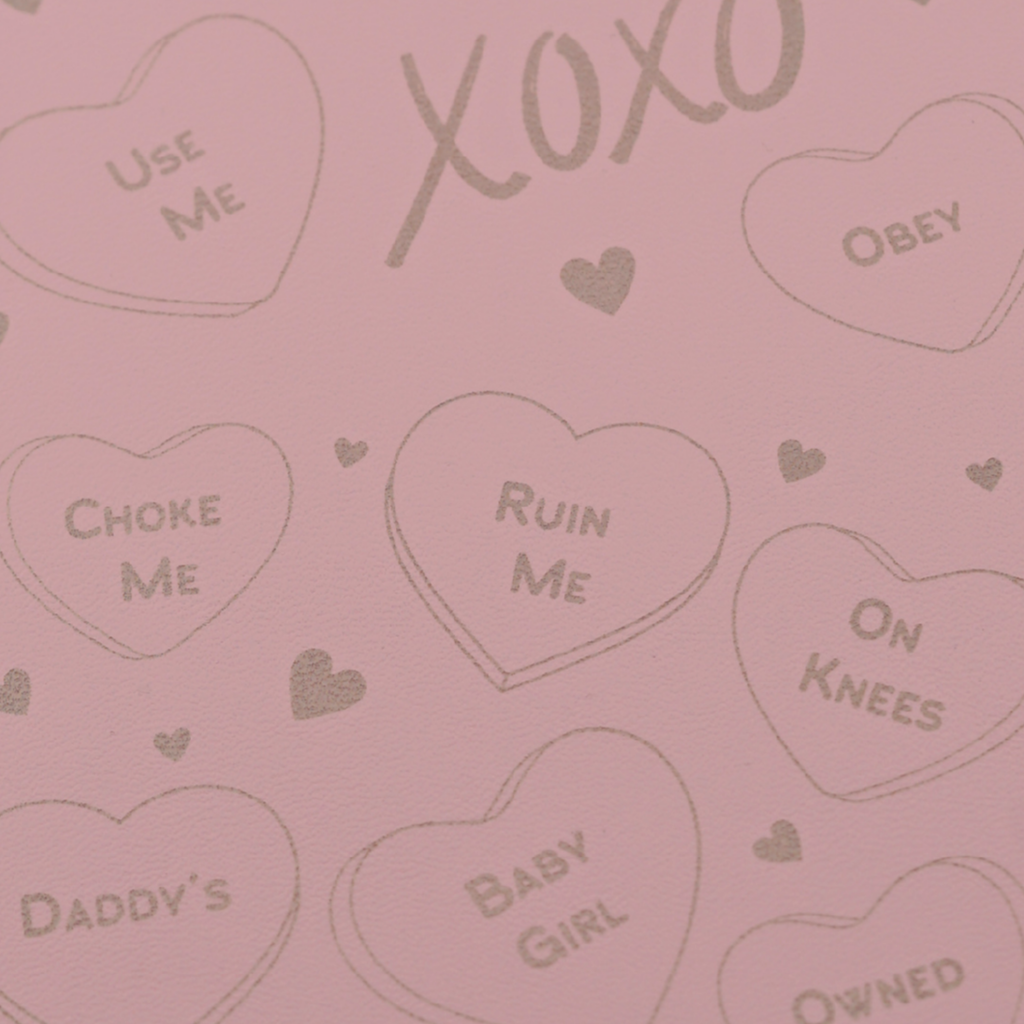 A bold, unapologetic Valentine’s pocket notebook made for thoughts that are anything but innocent. This edition features explicit candy-heart–style words on the cover—dirty, dominant, submissive, and meant only for adults who know exactly what they like.