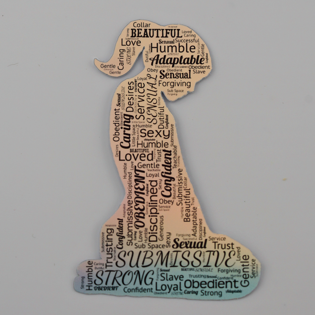 Add a little shimmer and personality to your space with this holographic submissive word art sticker. Designed to stand out, the light-catching holographic finish shifts beautifully while highlighting the expressive word art design—perfect for adding a subtle, playful touch to your journals, notebooks, and everyday items.