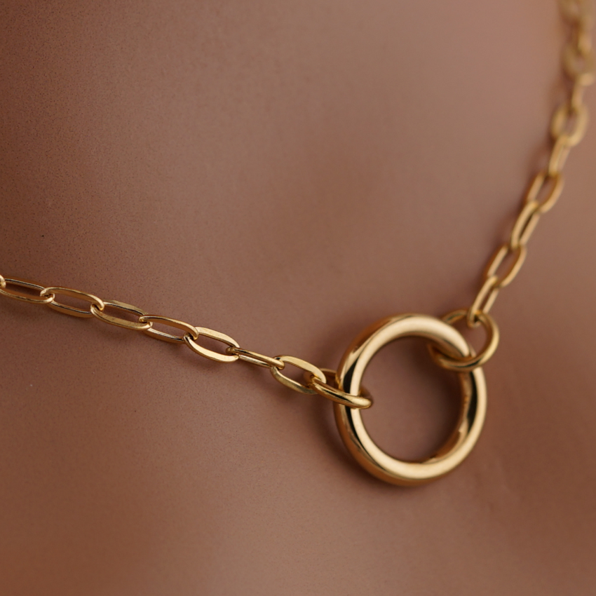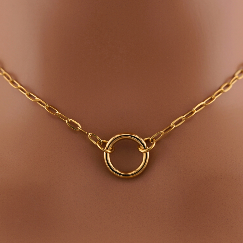 Gold Paperclip Chain Submissive Day Collar – Discreet O-Ring Collar