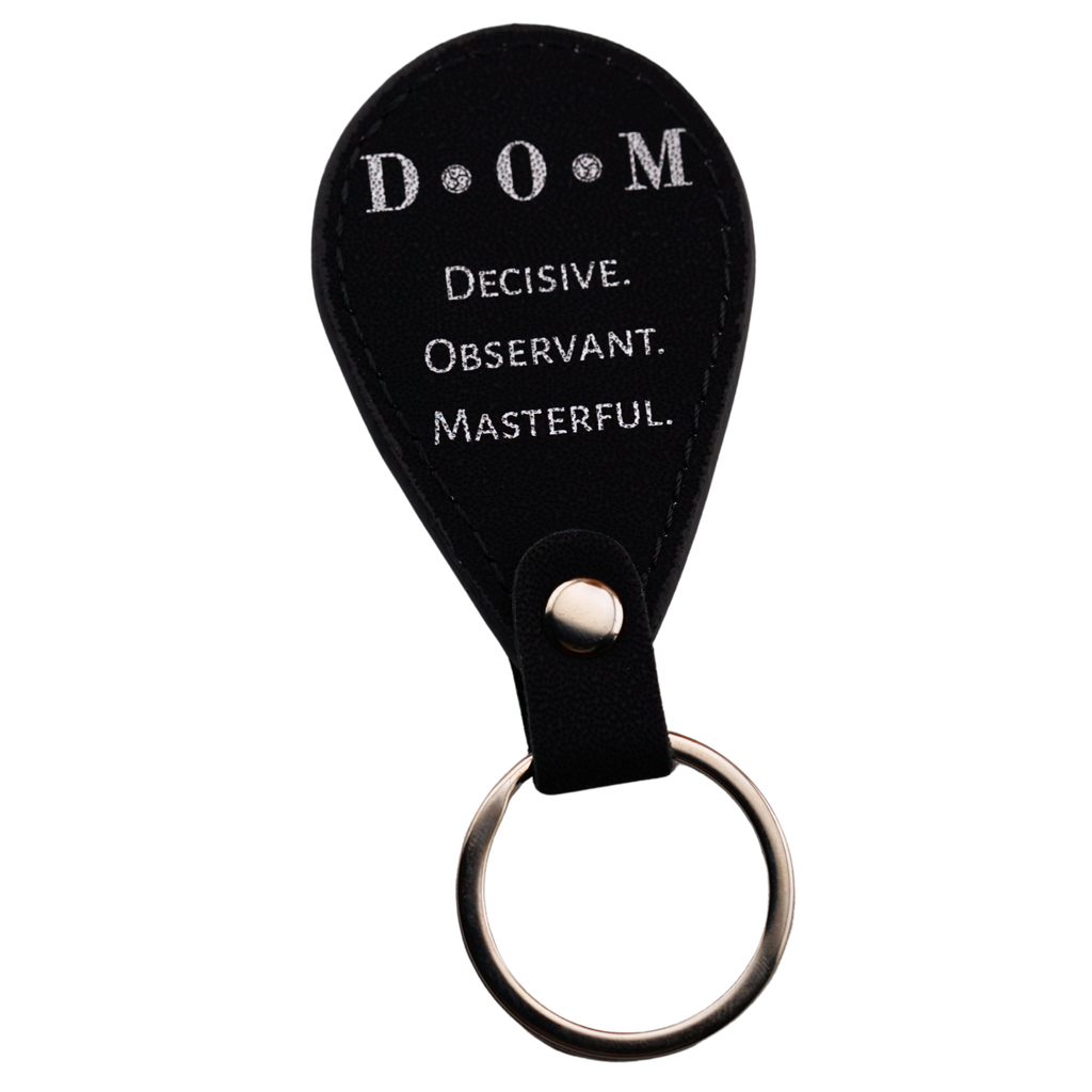 D•O•M Leather Keychain – Decisive. Observant. Masterful.