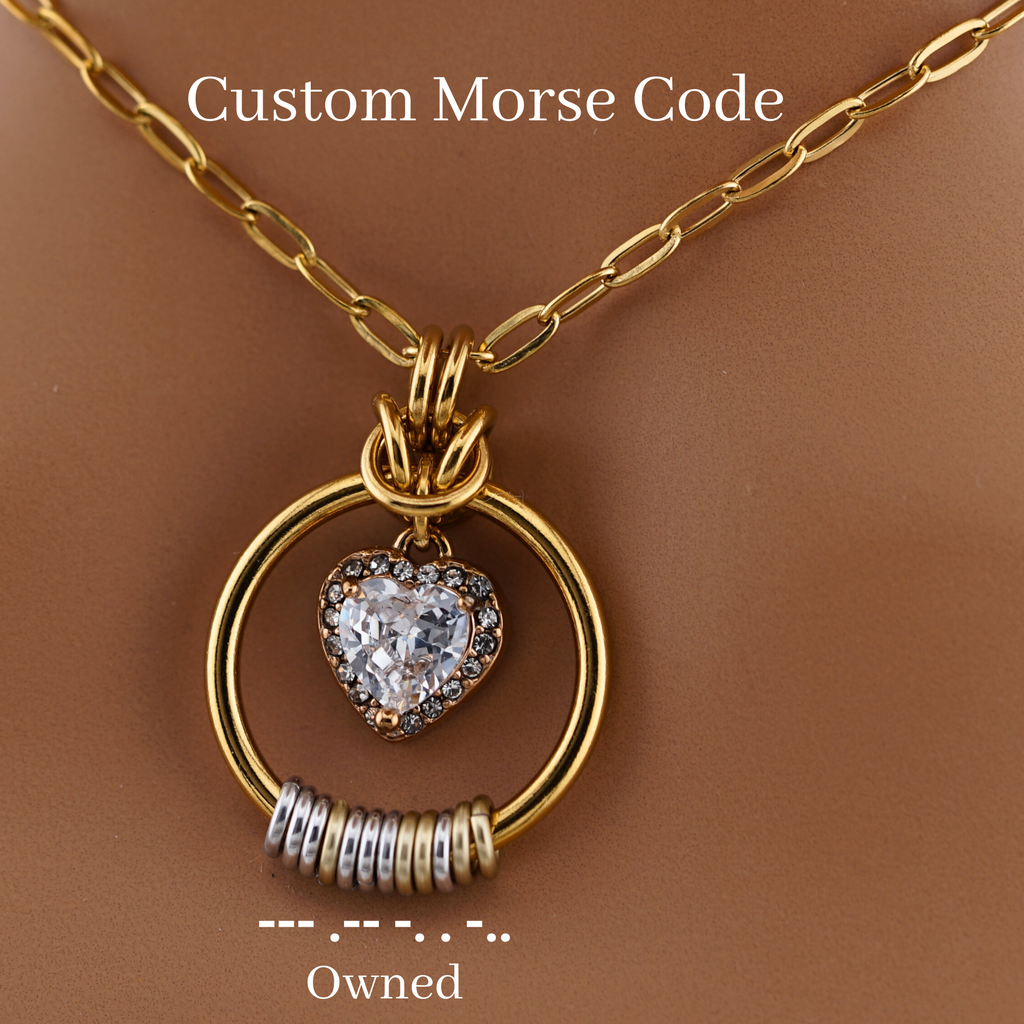 Gold Morse Code w/ CZ Diamond Heart