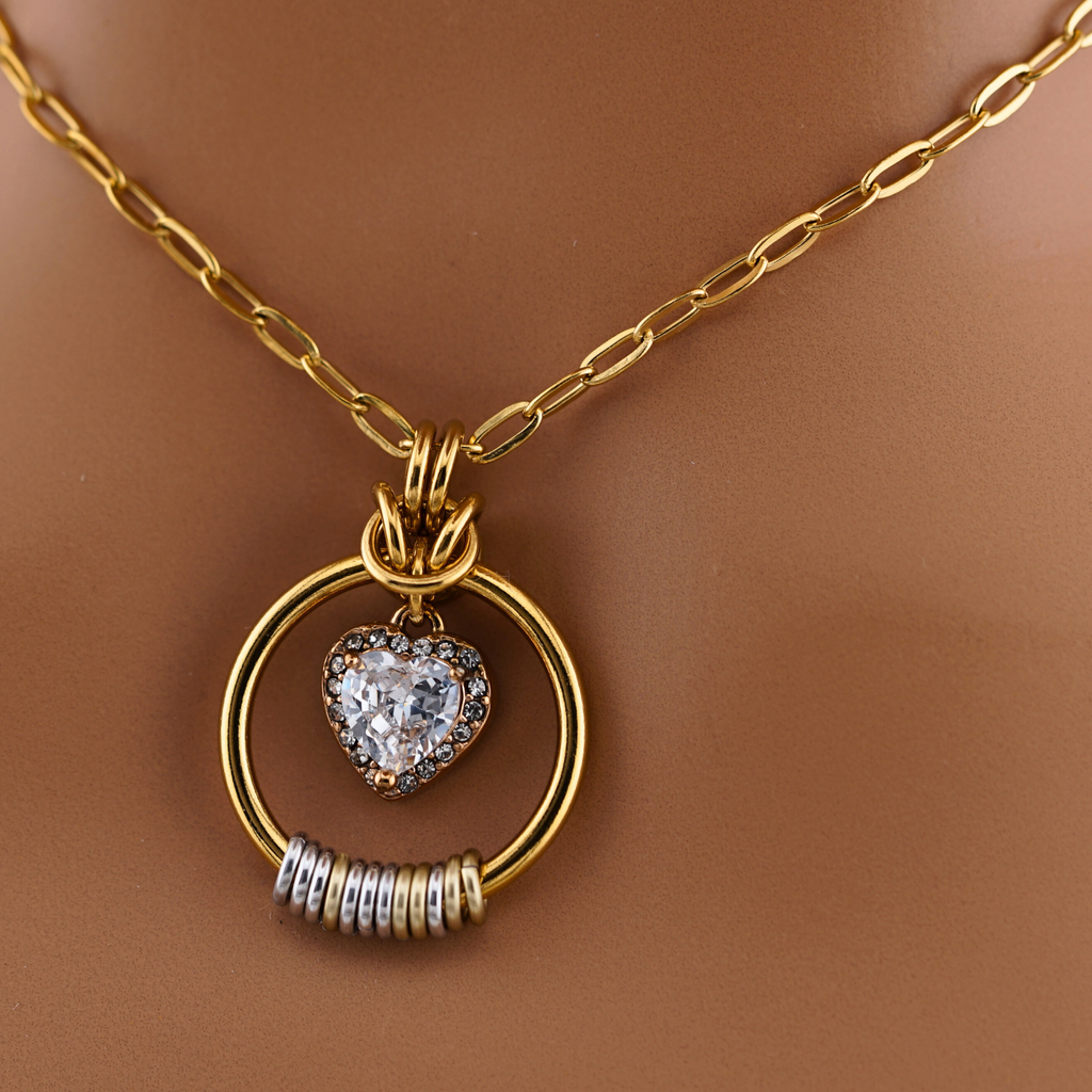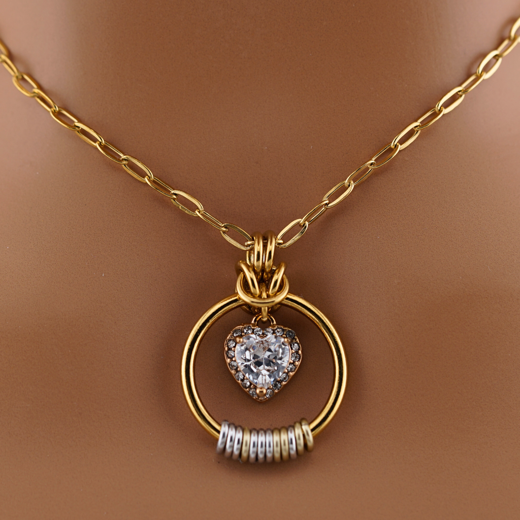 Heart: Gold plated stainless steel with CZ stones